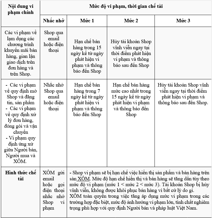 - Quy định chung về các mức độ vi phạm, hình thức và thời gian chế tài: