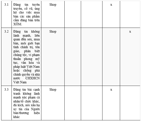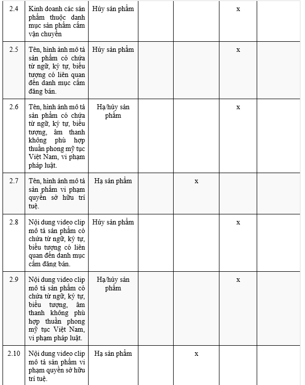 - Đăng tải những sản phẩm thuộc danh mục cấm kinh doanh theo quy định của pháp luật.