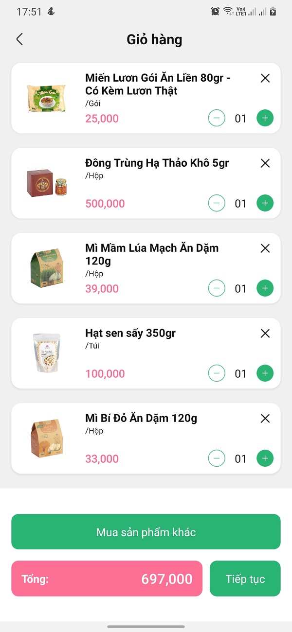 Bước 4: Lựa chọn sản phẩm và thêm vào giỏ hàng – Tiến hành đặt hàng (Thêm vào giỏ hàng – Tiếp tục – Đặt mua)